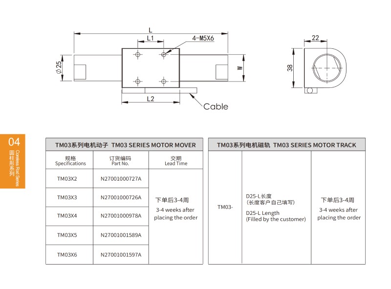 | TM 24系列圓柱形直線電機參數PARAMETERS OF TM 24 SERIES MOTOR | |||||||